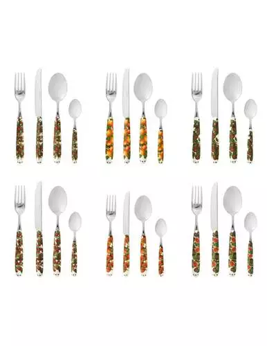 La natura rigogliosa pronta in tavola, con la collezione Le Primizie firmata Brandani: un trionfo di caldi colori e luminosi decori che abbraccia ogni accessorio della tua casa. Festeggia con noi la bella stagione: il set di posate Le Primizie, composto da 24 pezzi in acciaio inox, esalterà ogni contesto grazie ai suoi manici finemente adornati con decori di frutta. Eleganza, freschezza e radiosità accompagneranno ogni momento della giornata, dalla colazione al pranzo fino alla cena! Per momenti spensierati da trascorrere con i propri cari, una tavola raffinata trionfo di particolarità e buongusto.