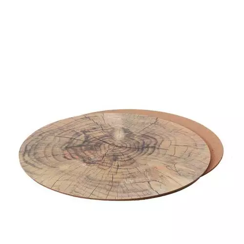 Sottopiatto dall'effetto sezione tronco di legno realizzato in pvc, retro in sughero.