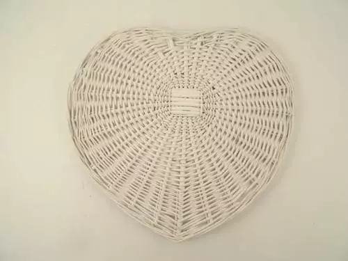 Sottopiatto in vimini laccato bianco a forma di cuore.