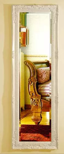 Specchio con struttura in legno di paulownia , cornice dipinta in bianco-avorio, finiture a rilievo e specchio molato.