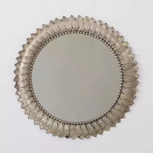 Specchio tondo da parete realizzato in metallo colore argento anticato lavorato a mano.