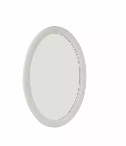 Specchio ovale con cornice in legno di pawlonia laccata bianca opaca.