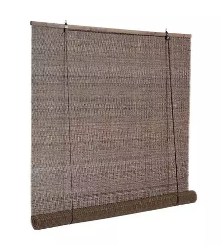 Tenda realizzata in midollino colore tabacco con tessitura fitta in poliestere.