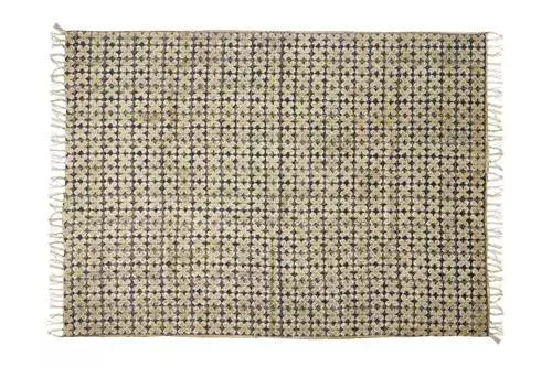 Tappeto in 100% cotone stampato, effetto colore anticato, finitura con frange.