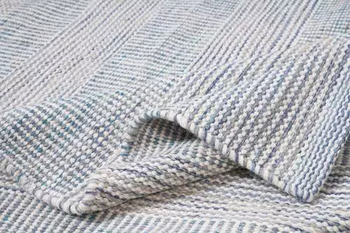Tappeto Lana Disegual Filo Blu E Beige 140×200