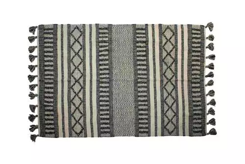 Tappeto Nero E Beige Geometrie Cotone Intrecciato 160×240
