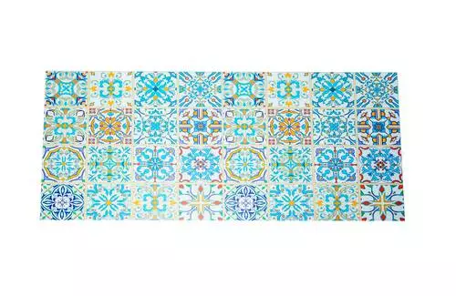 Tappeto realizzato in vinile stampato, ottimo per non scivolare.