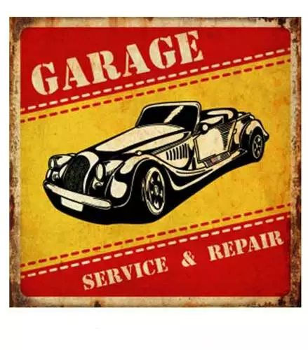 Targa Metallo Auto Garage Service Rosso Giallo
