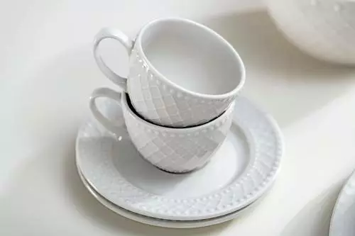 È la candida porcellana a far da padrona nella nuova linea Burlesque firmata Brandani. Una linea studiata per esaltare la tua tavola rendendola perfetta per ogni occasione, dall’evento speciale al quotidiano momento in famiglia. Il set di tazzine caffè Burlesque, composto da 6 tazze con relativi piattini, sorprenderà i tuoi ospiti grazie ad un elegante e splendente color bianco arricchito da affascinanti decori. Esaltato da una geometrica trama, che in leggero rilievo ne percorre i bordi, il set tazzine Burlesque è il giusto mix tra glamour, vivacità e raffinatezza: per una tavola versatile, chic e radiosa.. al sapor di pausa caffè!