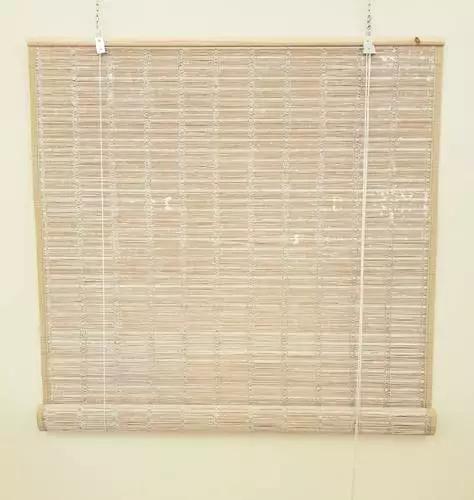 Tenda da sole in bamboo sbiancato con finitura decapato dove traspare il colore natuarle del bamboo, laterali rifiniti con bordatura avorio.