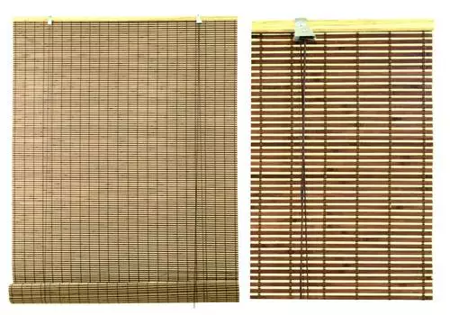 Tenda da sole in bamboo a listelli colore noce.