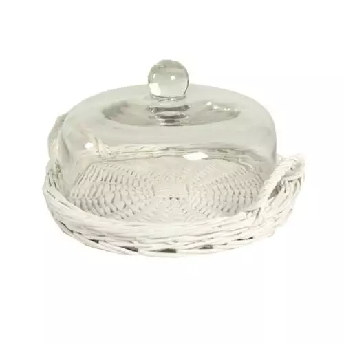 Tortiera Vimini Bianco Con Campana In Vetro 27cm