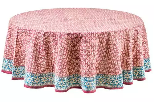 Tovaglia Cotone Malva Bordo Azzurro Tonda Cm 180