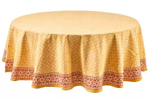Tovaglia Cotone Ocra Bordo Rosso Tonda Cm 180