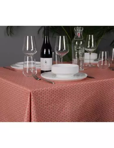 Tovaglia in cotone con rivestimento plastificato antimacchia, che permette la pulizia on un colpo di spugna.