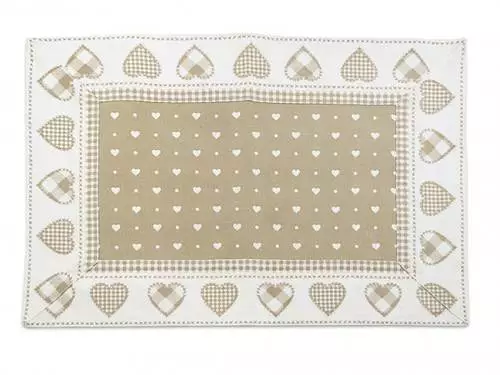 Tovaglietta Americana Cotone Bianca Cuori Beige