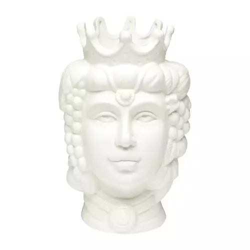 Vaso da arredo testa di moro in ceramica bianca ispirata alle famose e tradizionali sculture Siciliane. La testa di moro è ispirata a una antica e affascinante leggenda della Sicilia che nasce dalla passione, dall'amore e dalla gelosia, sentimenti di cui questa isola ne è impregnata.