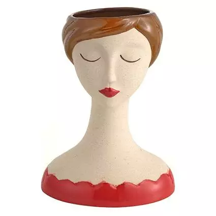 Vaso da arredo realizzato in ceramica dipinto a mano a forma di volto femminile, portavaso per fiori e piante dalle linee moderne, simpatico oggetto d'arredo da interno per salotto, camera o bagno, decorazione chic e raffinata.