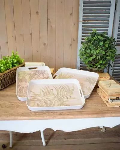 Vassoio rettangolare con maniglie realizzato in 100% fibra di bamboo pressata, lavabile e resistente.