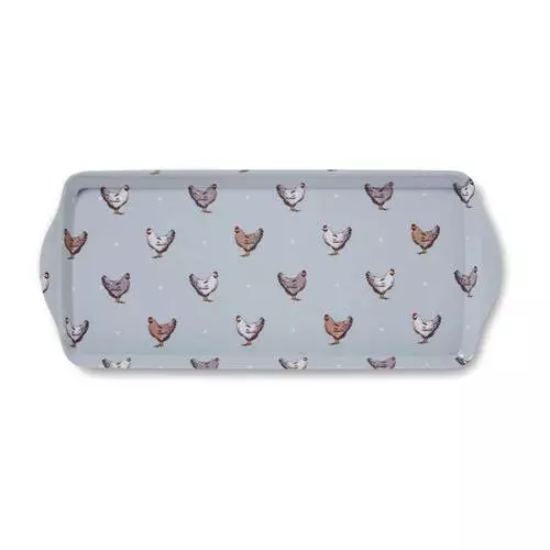 Vassoio realizzato in plastica melaminica, forte e durevole, facile da pulire con un panno bagnato, collezione Farmers Kitchen, ispirata alla fattoria con galline del pollaio, dell'azienda inglese Cooksmart, ideale per servire tè, caffè, torte e biscotti.