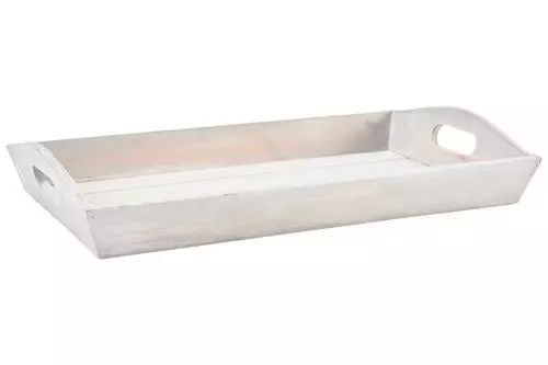 Vassoio Legno Bianco Shabby Con Maniglie 40×24