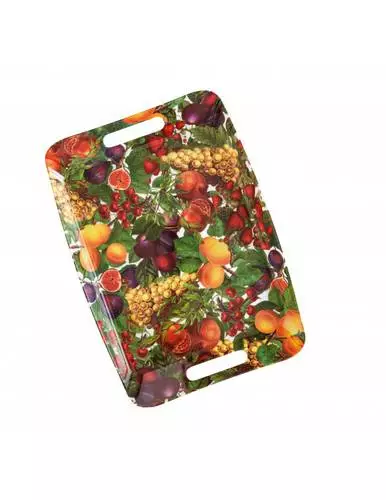 Vassoio in melamina della collezione Le Primizie firmata Brandani, con il pratico rivestimento antiscivolo assicura un’ottima aderenza garantendo sicurezza e stabilità mentre si trasportano cibi e bevande, forti inoltre della presa dei due manici. La sua superficie è completamente decorata, confermandosi come un accessorio pratico da utilizzare e assolutamente grazioso da mostrare.