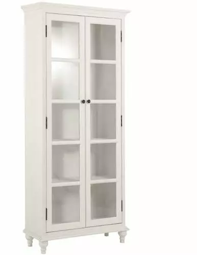 Vetrina in legno di abete laccato bianco opaco con 2 ante in vetro.